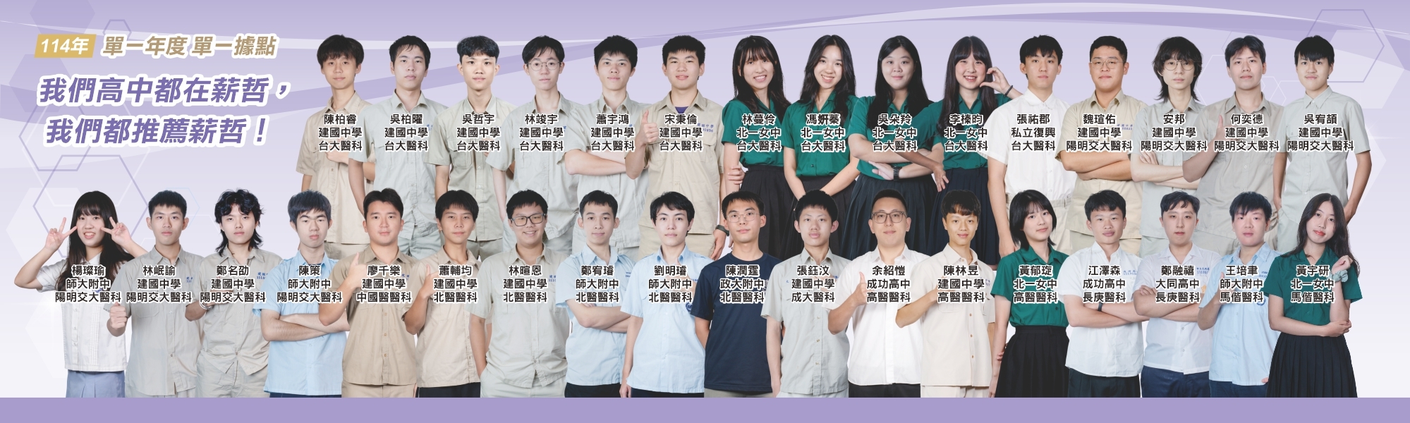 114年錄取建中北一附中科學班榮譽榜
